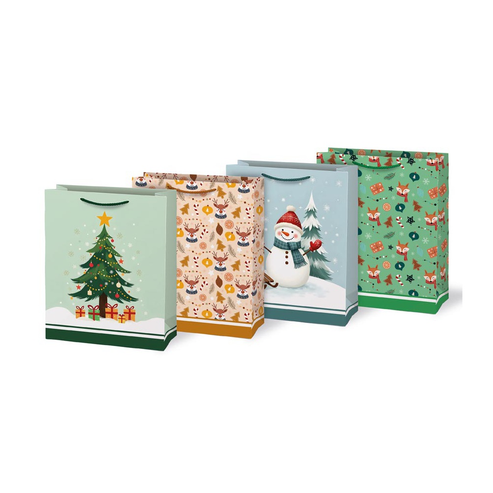 Motivy s ozdobeným stromečkem, usměvavým sněhulákem, sobíky i liškami přinesou do vašeho obdarování hravost a kouzelnou atmosféru Vánoc.