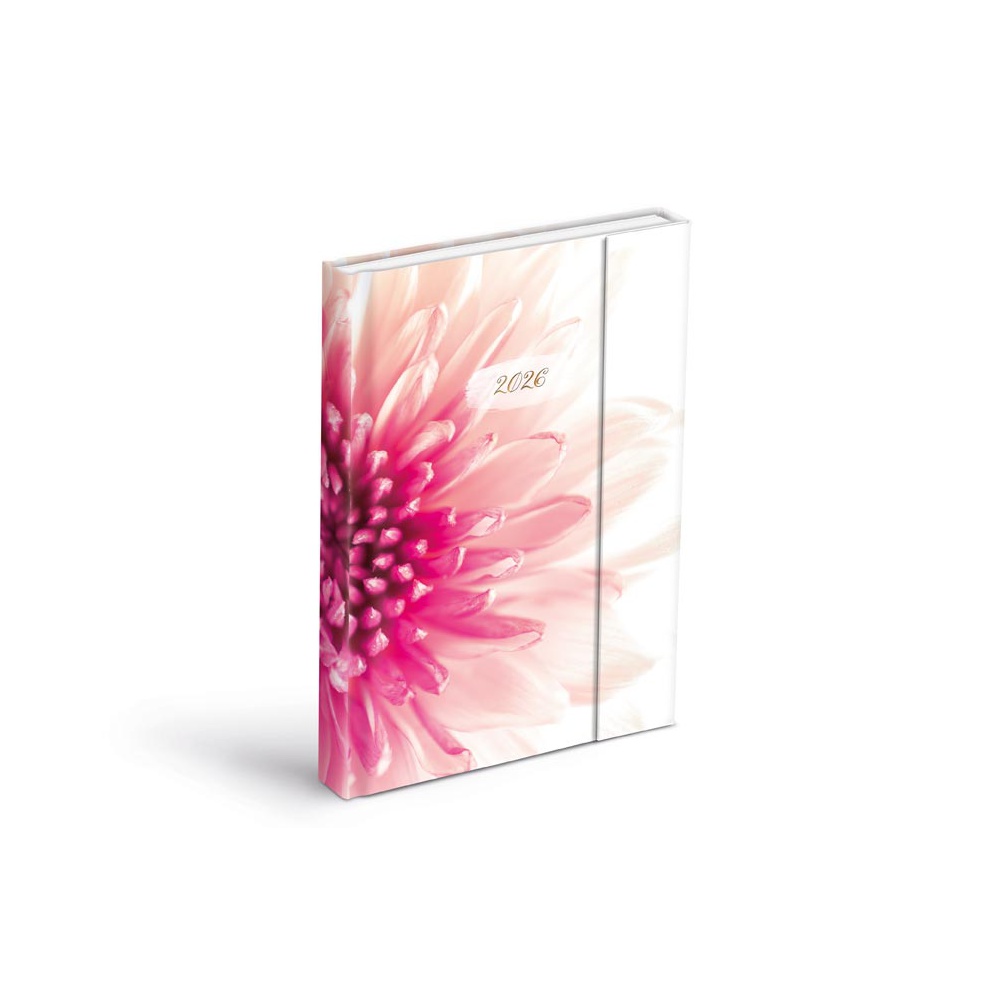 Denní diář pro rok 2026 ve formátu A5 s nádherným květinovým motivem, který zaujme na první pohled.