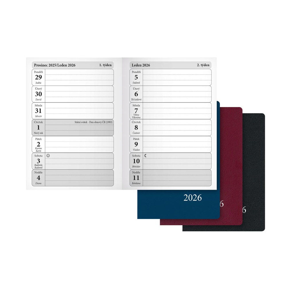 Týdenní diář v menším formátu v obalu z PVC, Vám poskytne přehled o celém týdnu, což usnadní plánování pracovních povinností, schůzek i volného času.