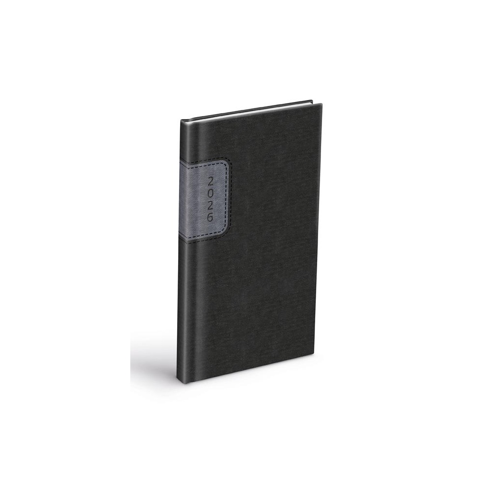 Týdenní diář 2026 v tmavě šedé barvě je dokonalým spojením jednoduchosti a elegance.