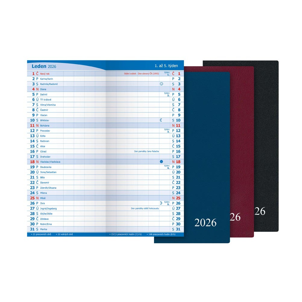 Každý den má své místo, včetně svátků, významných dnů, fází měsíce i týdenních čísel. Díky jednoduchému rozvržení rychle zjistíte, co vás čeká – bez zbytečného listování.
