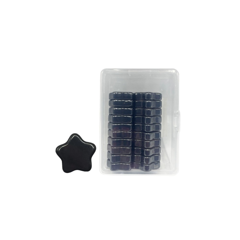 Nástěnkové černé magnety ve tvaru hvězdy o rozměru 20 x 20 x 5 mm.