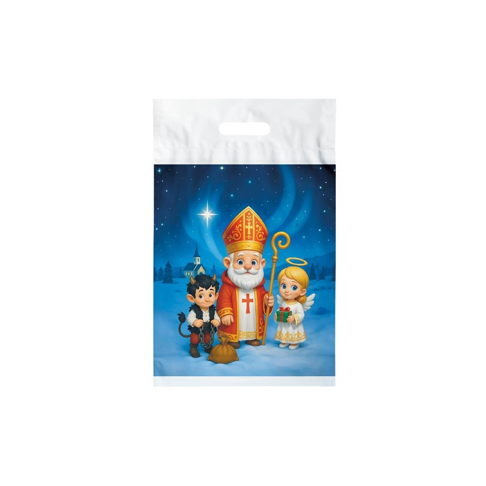 Tradiční mikulášská dárková taška nesmí chybět při žádné nadílce. Nabízí opravdu velký prostor pro všechny dobroty, které Mikuláš, anděl a čert přinášejí.