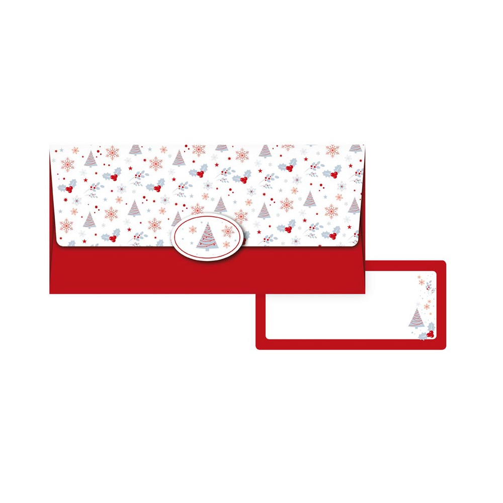 Hledáte způsob, jak darovat peníze či poukaz s lehkostí, vkusem a nádechem sváteční atmosféry? Tato elegantní obálka s motivem stylizovaných stromečků, sněhových vloček, hvězdiček a červených bobulek v sobě nese jemnou zimní poezii. Kombinace čistých linií a tlumených barev vytváří harmonický design, který potěší každého, kdo ocení decentní krásu.