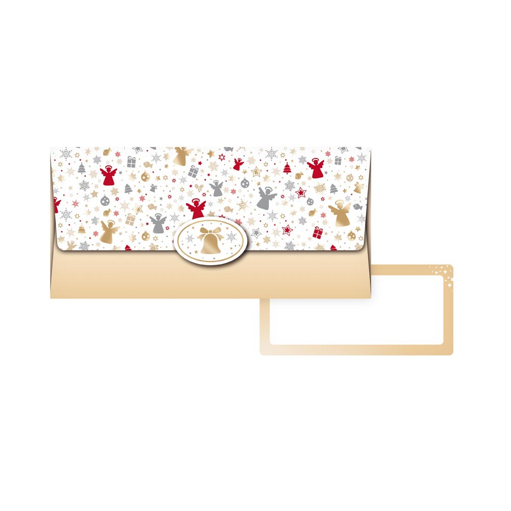 Dárková obálka na peníze s vánočním motivem a uzavíratelnou klopou.