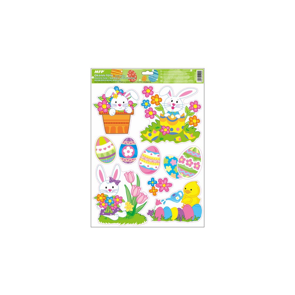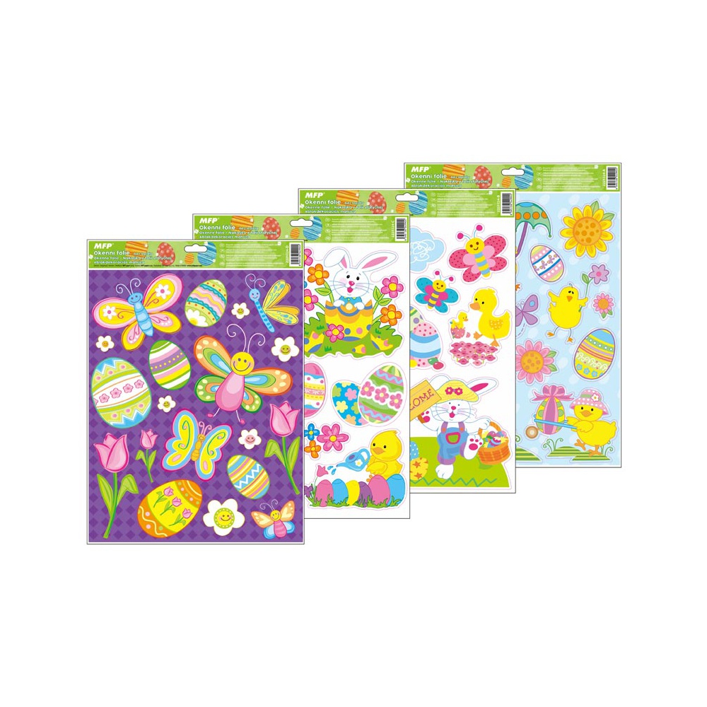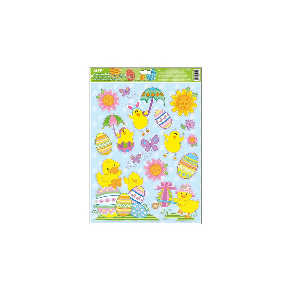 Dekorační okenní fólie - kuřátka, vajíčka, motýlci, zajíčci - 20 x 30 cm