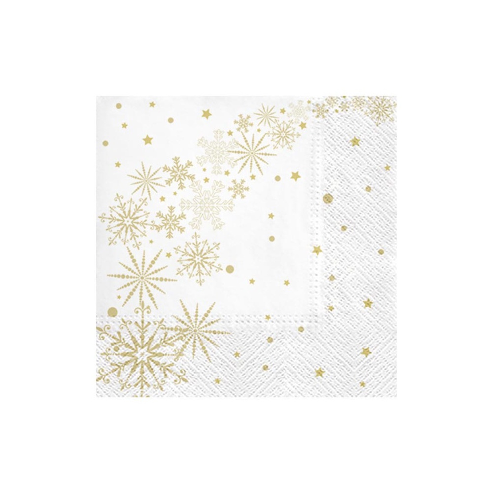 Decentní a přitom slavnostní doplněk vašeho stolování. Bílý ubrousek zdobí jemný motiv zlatých sněhových vloček a hvězdiček, který dodává sváteční tabuli eleganci a nádech zimní pohádkovosti.